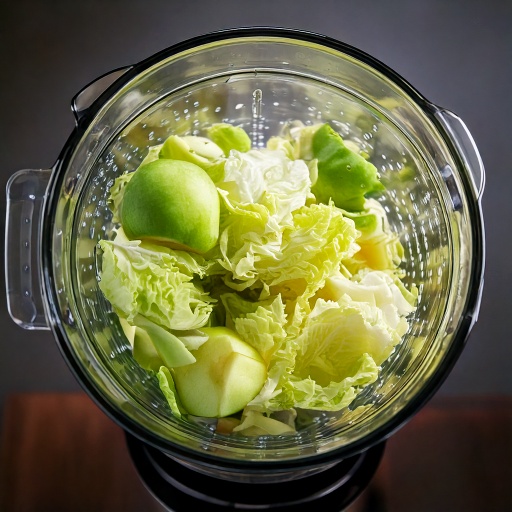 2️⃣ 믹서기에 양배추, 사과, 물을 넣고 곱게 갈아줍니다.