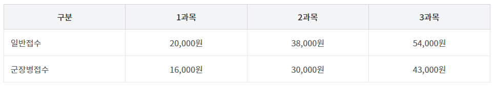 -2020년 2월 정기시험부터 적용된 금액(2020년 1월 1일 이후)