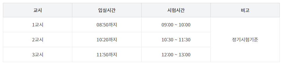 - 과목별 시험응시 가능한 시간
