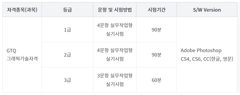 GTQ는 Graphic Technology Qualification로 컴퓨터그래픽 디자인 능력을 평가하는 국가공인자격 시험입니다.